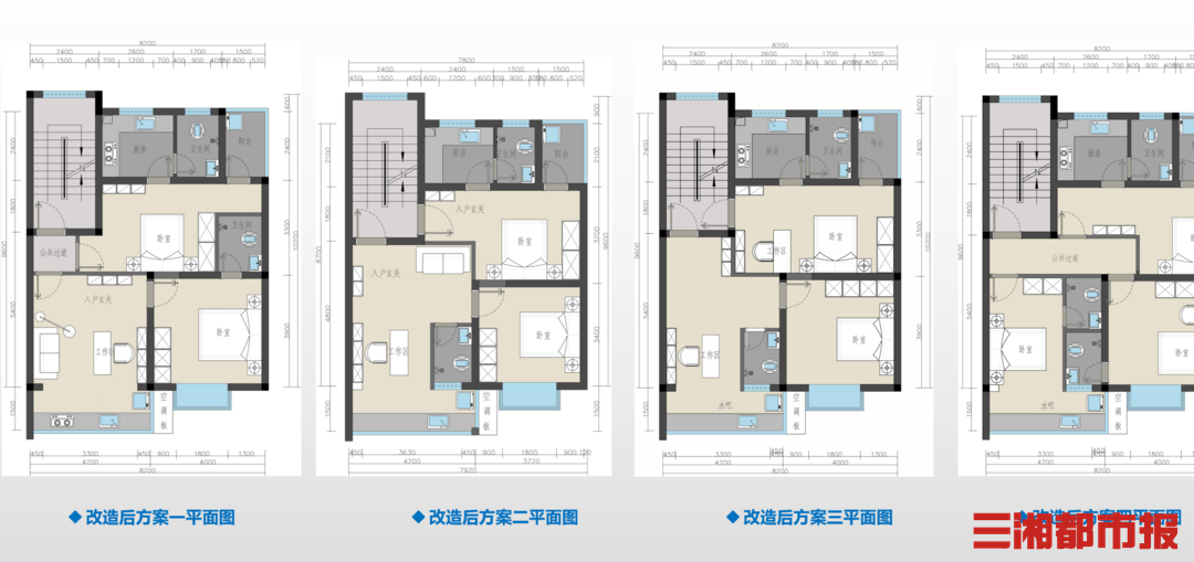 吴栋告诉三湘都市报记者,村里为小区每个户型设计了3个以上的方案,以针对不同人群的租房需求。比如,将房屋一分为二的改造方案较适合大学生创业群体租赁,后期也能通过小微改造变成企业办公所用;一分为三的方案因为空间不仅独立而且功能齐全,则更适合情侣、小生意人群和学生居住。