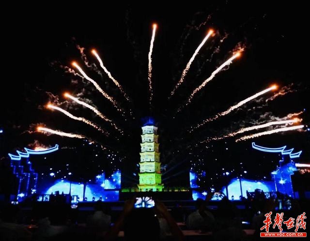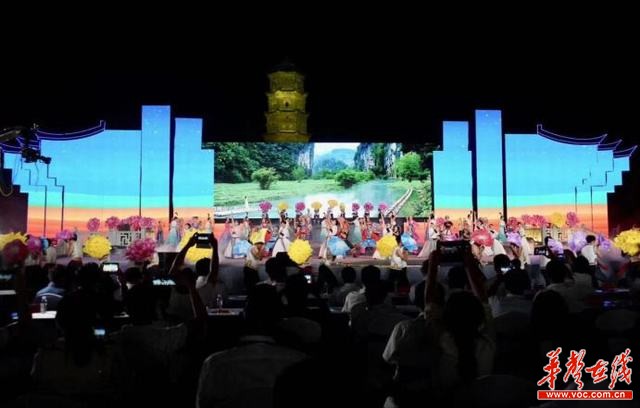 开幕式上还举行了精彩的文艺晚会。晚会分《蚩尤故里·云归吾乡》《湘中明珠·紫鹊人家》《和美与共·四海同梦》三个篇章,现场借助多媒体技术和声光电手段,如裸眼3D、时空凝结、数字灯光技术、无人机矩阵、激光焰火,文化内涵和高新技术相融交错,让人眼前一亮,为开幕式增添亮点、看点。