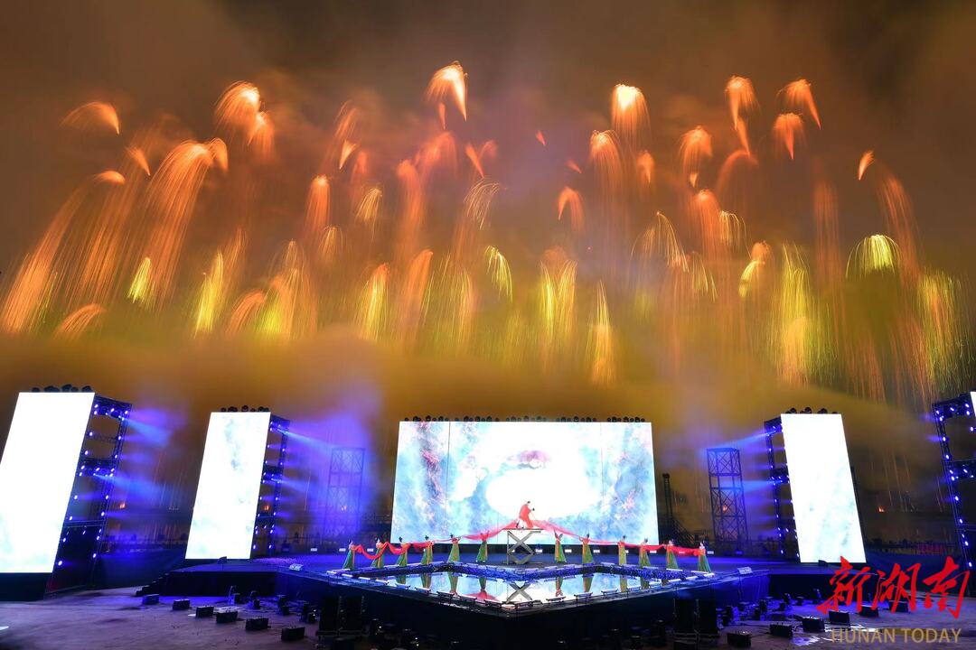 “‘焰遇浏阳河’的第三季升级秀,最大的特点是沉浸式体验。现场,由数控车台技术打造的9大可移动开合式冰屏矩阵,跟随篇章的展开,配合超大型桃心符号浅水舞台、数控机械升降平台、百米悬吊环形灯光矩阵,在有限的空间内做出了无限的视觉变化。