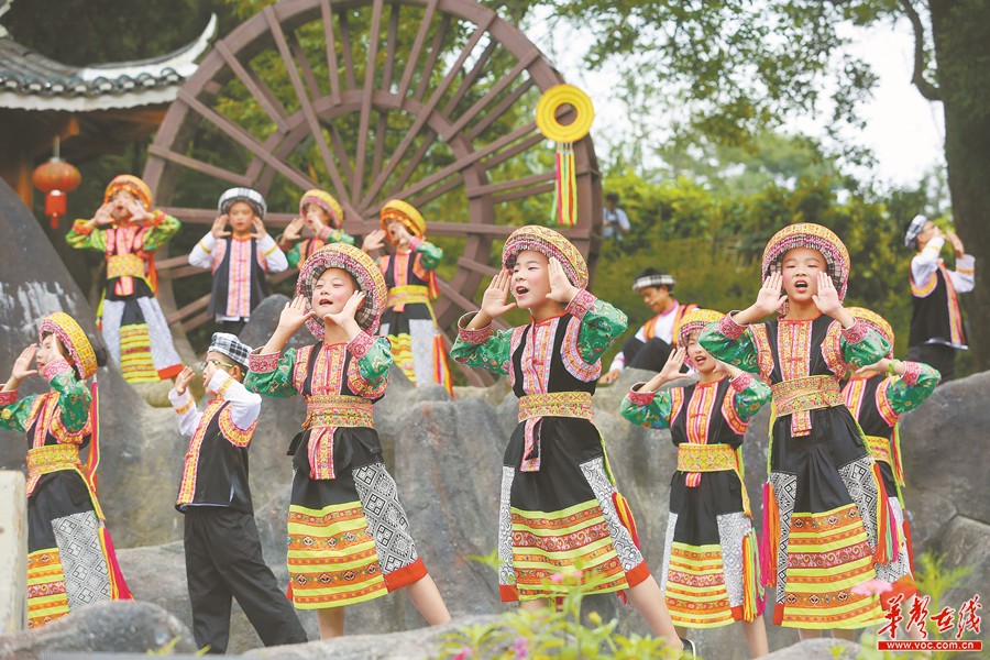 8月24日,隆回县虎形山瑶族乡,花瑶同胞在“讨僚皈”民俗风情节上高唱花瑶呜哇山歌。“讨僚皈”是花瑶同胞最隆重的传统节日之一,已有上千年历史,2009年入选湖南省非物质文化遗产名录。曾勇 摄