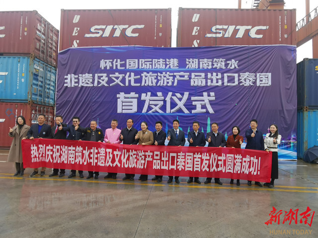 华声在线11月15日讯(记者 李夏涛 周紫云 通讯员 雷明雄 李辉)汽笛声声启新程。今日上午,怀化市非遗及文化旅游产品出口泰国仪式,在怀化国际陆港海关监管区举行。这是怀化市非遗及文化旅游产品首次通过怀化国际陆港出海。
