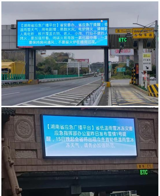 省应急广播调度控制平台此前已经顺利连通长永高速长沙收费站、京港澳高速雨花收费站、京港澳高速李家塘收费站等地户外大屏。网络中心安排工作人员从15日开始在这些大屏滚动播发预警信息。另外,还采取飞字的方式每天通过湖南经视、湖南省有线数字电视、湖南省地面数字电视等全天播发预警信息20多次。网络中心还注册了抖音、快手、百家号等短视频发布平台账号,引入数字人短视频项目。为应对雨雪冰冻天气,从15日开始,网络中心制作播发了3个短视频。截至16日,“雪情1号”短视频播放量达到43万,“五点安全事项提醒”短视频播放量破万。网络中心还通过湖南省应急广播短信平台及时大范围群发了毛伟明省长在全省应对防范低温雨雪冰冻灾害电力保供调度会上讲话和省应急管理厅发布的用电提示等。