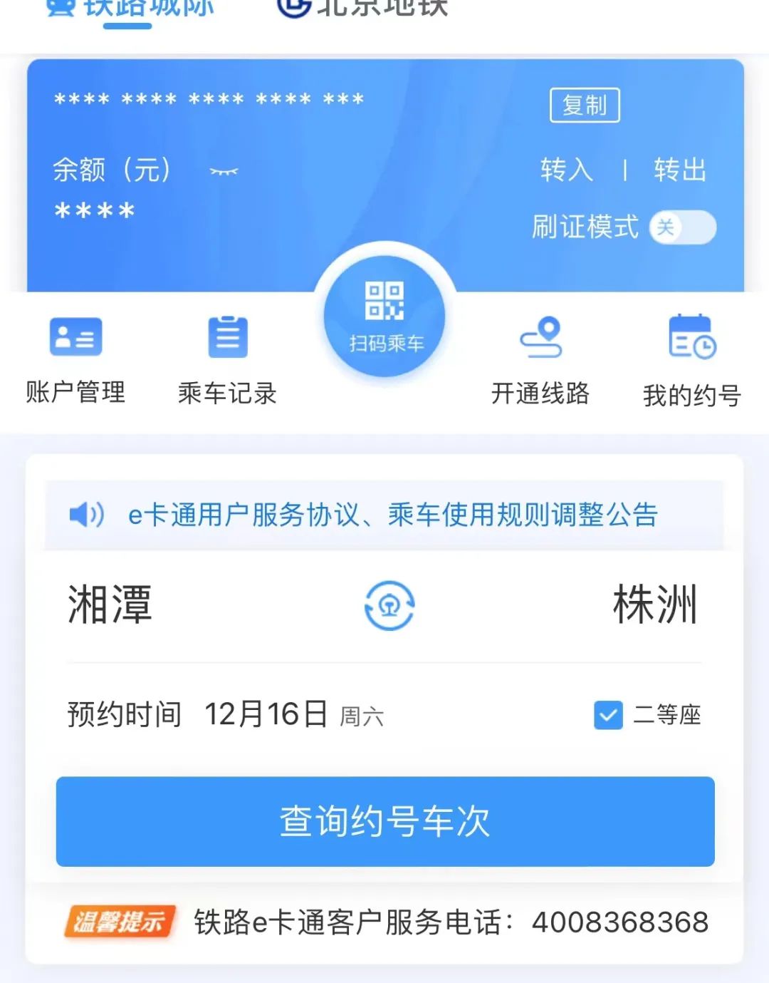 早在2018年,长株潭城际提出“扫码乘车”,开通了12306APP“铁路e卡通”支付。