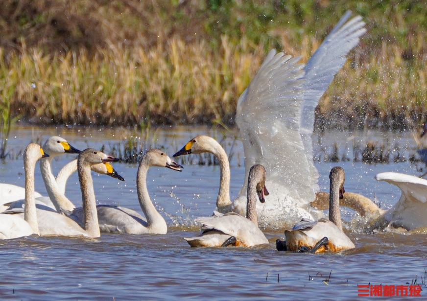 候鸟者,人类之朋友也。大批小天鹅到东古湖做客,是洞庭湖湿地生态环境持续向好的重要标志。如今,东古湖周边村民纷纷约定,不向农田喷洒农药、过节不放鞭炮,让候鸟们吃饱喝足,更有力量翱翔天空。