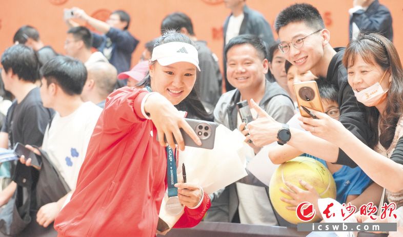 比赛结束后郭涵煜与粉丝合影。均为长沙晚报全媒体记者 邹麟 摄