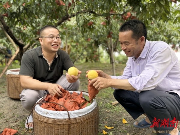“炎陵黄桃供不应求,来晚了就没有了。”收购商李镇江说。7月25日清晨,李镇江早早地来到黄桃园,与农户签订收购协议。“今年的桃子比去年好,预计能收15万斤。”作为株洲市天乐科技有限公司的负责人,2017年,李镇江通过线上销售黄桃等农产品,销售额超过200万元。