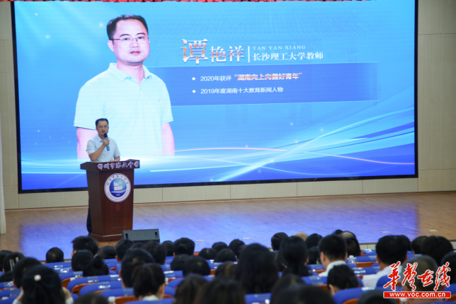 (谭艳祥在郴州市第二中学宣讲个人从教心路历程。 通讯员供图)