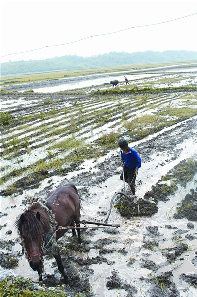勤劳的楼田人民,曾向这大片的水域索要过旱涝保收的良田:人们勘选出沼泽地的某些个局部范围,用大量从山林中砍伐下来的松原木,按一定的间距,平铺在淤泥之中,并让树木交织成层,如铺设楼伏条那样,上复积土,便成了田地。于是村前又呈现出一派“稻熟、荷香、鱼跃”的丰收景象来。“楼田”古名,竟始于这树木造田之法。