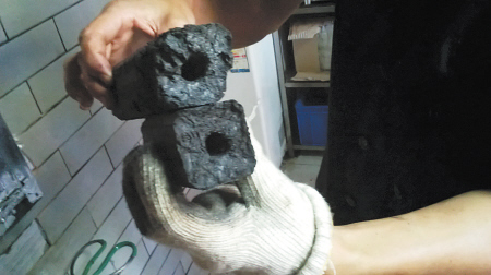 店主称,燃料是一种环保木炭。 聂映荣 摄