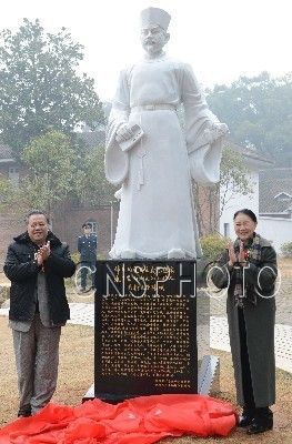 1月12日,为纪念湖湘文化创始人之一的南轩夫子诞辰880周年,“张栻高瞻远瞩雕像”揭幕仪式在湖南大学岳麓书院中国书院博物馆广场隆重举行。张栻(1133年9月15日-1180年3月22日)字敬夫,世称南轩先生,南宋中兴名相张浚之子,是著名的理学家和教育家,著有《南轩集》,湖湘学派集大成者。与朱熹、吕祖谦齐名,时称“东南三贤”。中新社发 刘柱 摄