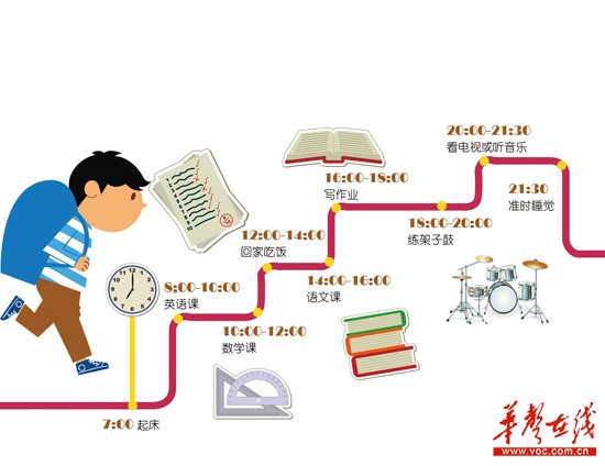 潘阳今年小学毕业被南雅中学录取,本该大肆庆祝疯玩一下,他却为了应对分班考试,刚放暑假就报了培训班。他第一期补课从6月20日开始,连上12天;第二期补课8月3日开始,又是10天。潘阳课业最繁重时,一天要上八节课。