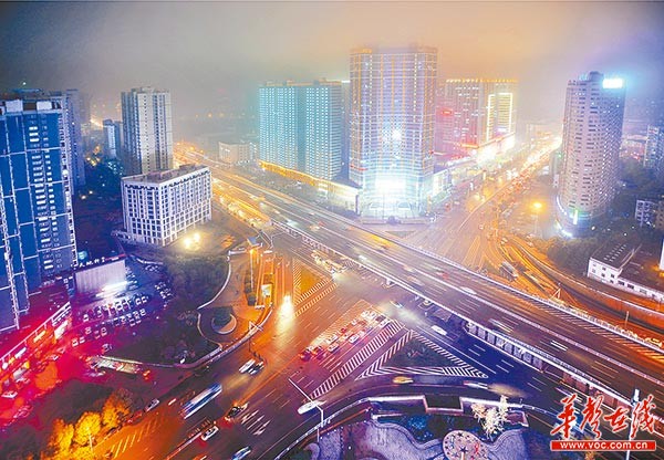 11月19日晚,长沙市岳麓区银盆岭,流光溢彩的滨江商务新城。今年,湘江新区共铺排了147个重点建设项目,一系列关乎城市配套、民生投资、城市形象的项目陆续开建。截至10月底,湘江新区重大社会投资产业项目完成投资57.8亿元,同比增长59.2%。湖南日报记者 李健 摄