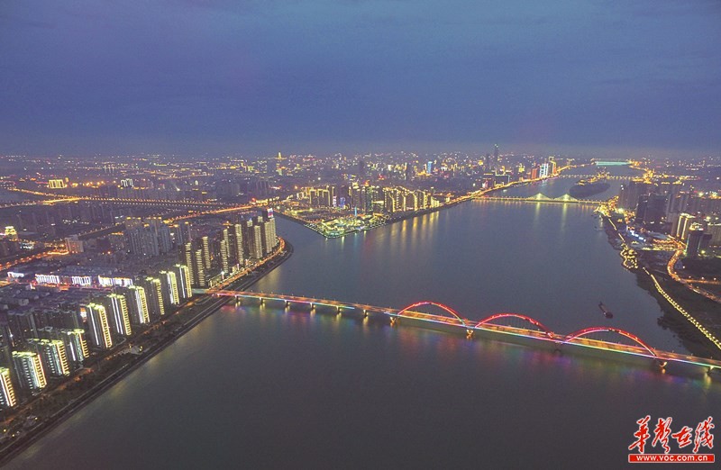 华声在线7月1日讯 俯瞰湘江两岸,一幢幢巍然挺立的大楼刷新着城市的高度,高低错落的城市天际线逐一点亮;福元路大桥、银盆岭大桥、橘子洲大桥、猴子石大桥,彩光把桥体映射得辉煌夺目,如道道长虹横卧水中…… 7月1日19时,长沙湘江两岸夜景亮化提质工程正式亮灯,“山水洲城”的美丽夜景尽收眼底。