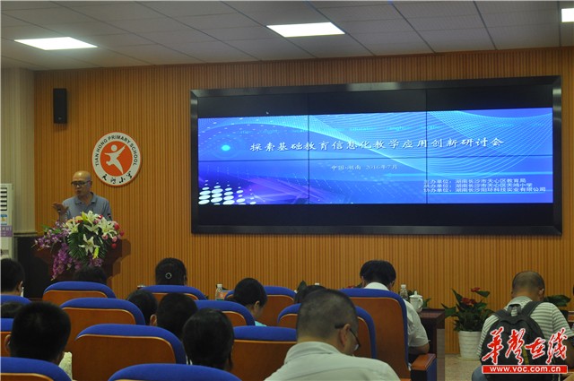 华声在线7月1日讯(记者 潘梁平)今天上午,湖南省基础教育信息化研讨会在长沙市天心区天鸿小学顺利召开。本次研讨会由天心区教育局主办,天鸿小学承办,湖南长沙阳环科技实业有限公司协办。会上,天鸿小学校长孟新就“信息技术助推学校发展的探索”作了主题报告,代表湖南向来自全国范围内的领导嘉宾介绍该校在基础教育信息化教学应用创新方面的成功经验。