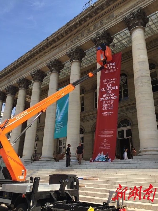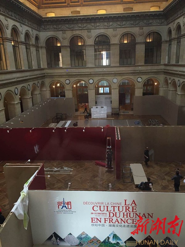 在巴黎布隆尼亚宫,记者看到工作人员正在紧张布展。负责布展的巴黎丹德公司负责人郑淑琪介绍说,布展工作从25日晚就开始了,预计今天晚上会全部完成。来自浙江温州的她说,对湖南丰富多彩的文化展示充满期待,相信一定能吸引很多法国人前来观展。