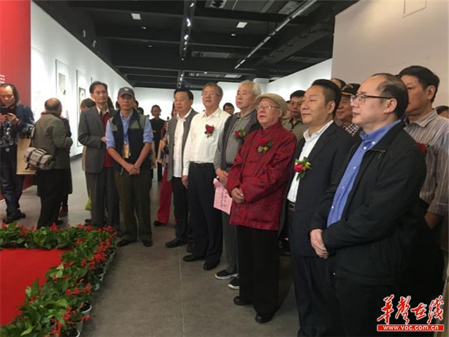 邬邦生(右三)及其家人、湖南省政协、湖南省军区、湖南省文联、湖南省书法家协会、湖南省美术家协会等领导和嘉宾出席开幕式。