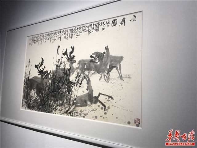 邬邦生的《九鹿图》,笔墨纵横,一只只鹿儿呦呦欢鸣于纸上。