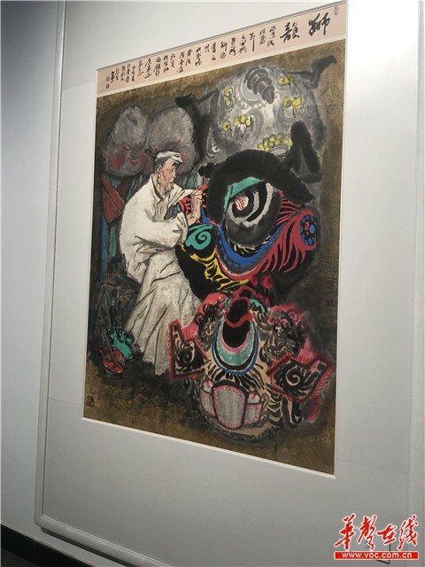 作品《狮韵》,彩墨淋漓,浑然天成。