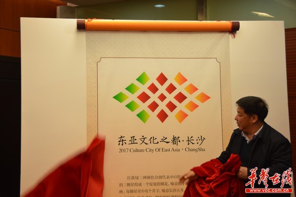 长沙市人民政府副秘书长厉江华为“东亚文化之都·长沙活动年”LOGO揭幕。
