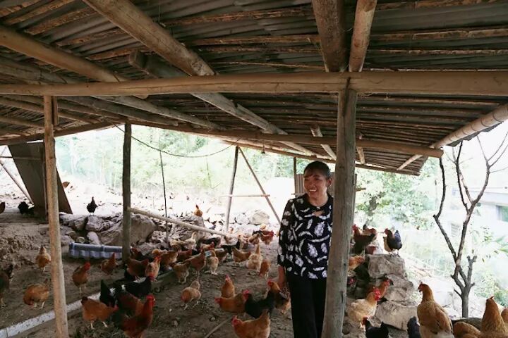 ( 村民谢嫦娥通过贷款,买来鸡苗,专门放养土鸡)