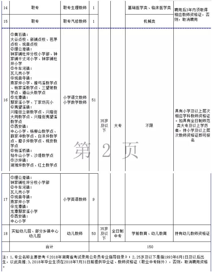 因工作需要,经县编制委员会同意,桃源县教育局所属部分公办学校拟面向社会公开招聘事业编制教师150名。