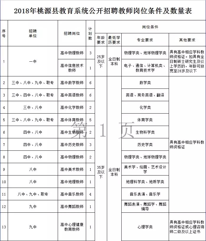 2.报名要求:报考人员根据自身情况、拟报考岗位的资格条件和专业要求,每人限报考一个岗位,报名确认后不得改报岗位。报考桃源一中教师岗位的,报名和录聘与其他学校分开单列。