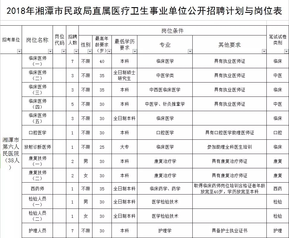 2018年湘潭市民政局直属医疗卫生事业单位招聘41名专业技术人员公告
