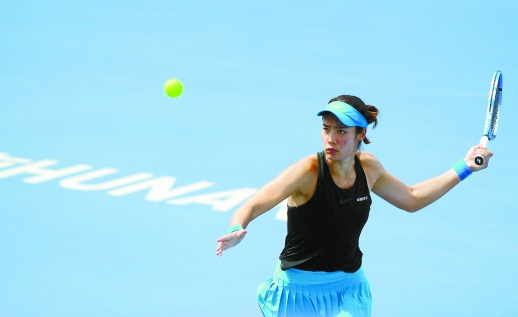 6月8日,广汽三菱杯ITF国际女子网球巡回赛长沙站双打决赛在省网球中心展开,湖南本土选手张莹搭档名将韩馨蕴出战,以1比2不敌丰硕/蒋欣玗,获得双打亚军。图为张莹在比赛中。