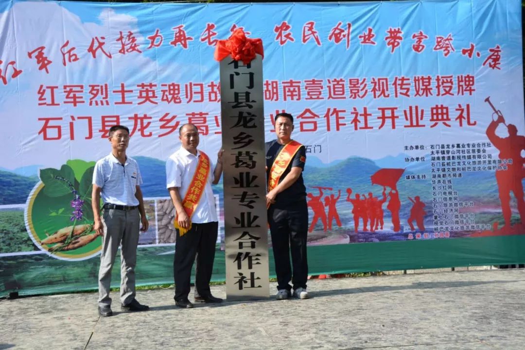 7月26日,石门县龙乡葛业专业合作社正式挂牌开业和进行技术培训,理事长孙建华表示,2018-2020年三年内,计划发展和改造3000亩葛根;到2024年时,扩大到1万亩,葛根产量达到5万吨,实现产值15亿元。和平镇粉葛种植合作社理事长吴东霖专程从广西出发,长途跋涉前来进行指导,县委原副书记黄家军、县人大常委会原主任王浦堂前往加油鼓劲,太平镇政府、有关单位和当地群众社员代表约200人参加。