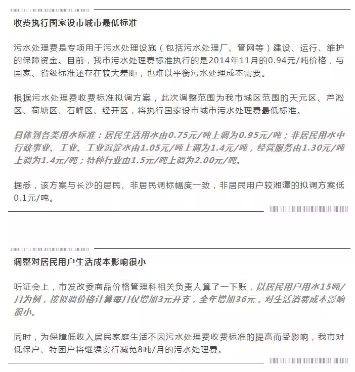 7月5日,株洲市发改委组织召开城区污水处理费收费标准调整听证会,拟执行国家设市城市污水处理费的最低标准,其中居民生活用水上调0.2元/吨,非居民用水上调0.1元/吨至0.5元/吨。