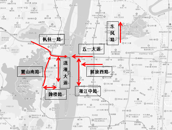 (1)五一商圈。节日期间五一商圈将是人流、车流最聚集的区域。其中不乏外地车辆,由于对长沙本地景区交通管制类信息以及停车场分布、饱和度不熟,五一大道、湘江中路、橘子洲大桥东西双向交通将受个别车辆排队等候进入停车场影响。