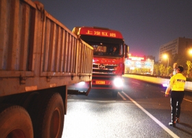 10点刚过,陆续好几台货车出现在了湘府路高架上。由于货车质量大,具有更大的危险性,民警将它们拦下。