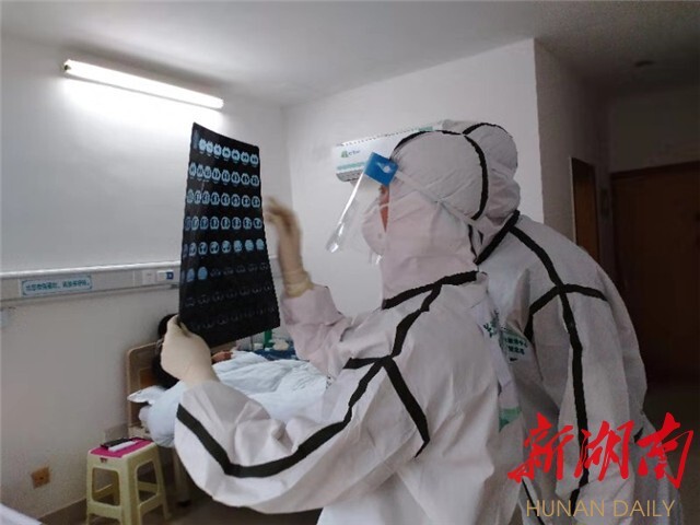 从长沙市中心医院前来驰援的杨勇则选择用一对一交流的方式,让患者安心接受治疗。
