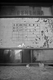 [长沙]暮云市站售票处列车时刻表仍斑驳清晰