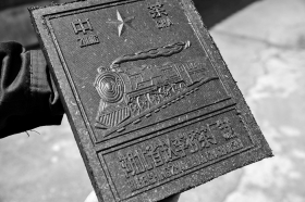 在老人们的指引下,我们前往昭山寻找一段老铁路,几经打问,终于在晴岚路不远处找到了老人口中的那段“铺着木枕”的老铁路。这是一条专线,还在使用之中。铁道穿过马路,跨越一座铁桥后,直达一个厂区的大门。大门紧闭,工作人员告诉我们,那是一个历史悠久的沥青厂。这段老铁路的发现让我们惊喜,老铁桥古朴、精巧,铁轨锈迹斑斑,枕木历经百年风雨,褪去了原来的颜色……更让我们欣喜的是,在一段铁轨上,我们发现了一行字:“BWGBOGHUM1908YHB”,不解其中意思,能够确定的是,铁轨,来自遥远的国外,来自1908年。