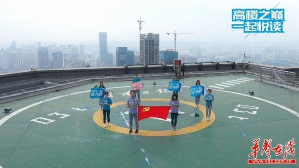 华声在线7月1日讯 “岁临九九,眺望百年;前行于百尺竿头、发展正中流击水……”在248米高的新湖南大厦之巅,传来青年齐声朗读之声。为庆祝建党99周年,缅怀革命历史,传承红色文化,积极打造爱读书、重学习的学习型组织,7月1日上午,来自华声在线股份有限公司党群工作部、华声股份公司分工会和华声全媒体党支部的多名党员和入党积极分子在新湖南大厦之巅,开展了一场特殊的阅读分享会,以实际行动礼赞峥嵘岁月,向建党99周年献礼。