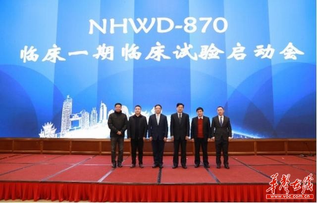 湖南省卫生健康委员会副主任龙开超、中南大学副校长陈翔、湖南省药品监督局注册处处长曾三平、湘雅医院肿瘤科主任申良方、湘雅药学院教授程泽能等出席启动会。曾三平指出,NHWD-870作为湖南省首个国家1.1类原创化药NHWD-870的作用机制及药效功能,从国家法规角度评估认为NHWD-870符合临床I期启动所有条件,湖南省药品监督管理局会持续关注临床试验进度并实时给出建设性意见。