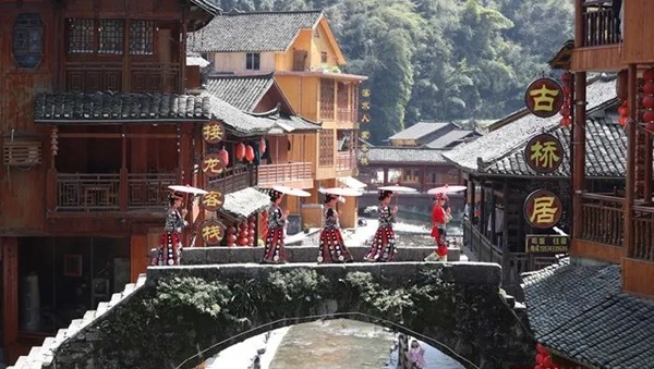 百年路桥奇观,千年苗寨风情,万年峡谷风光。本是让人望而生畏的幽闭峡谷,不起眼的湘西小镇,沐浴新时代的东风,通过一根有力的铁索,昂首走进世界的视野。“矮寨不矮,时代标高”,矮寨正在发出崛起巨响。