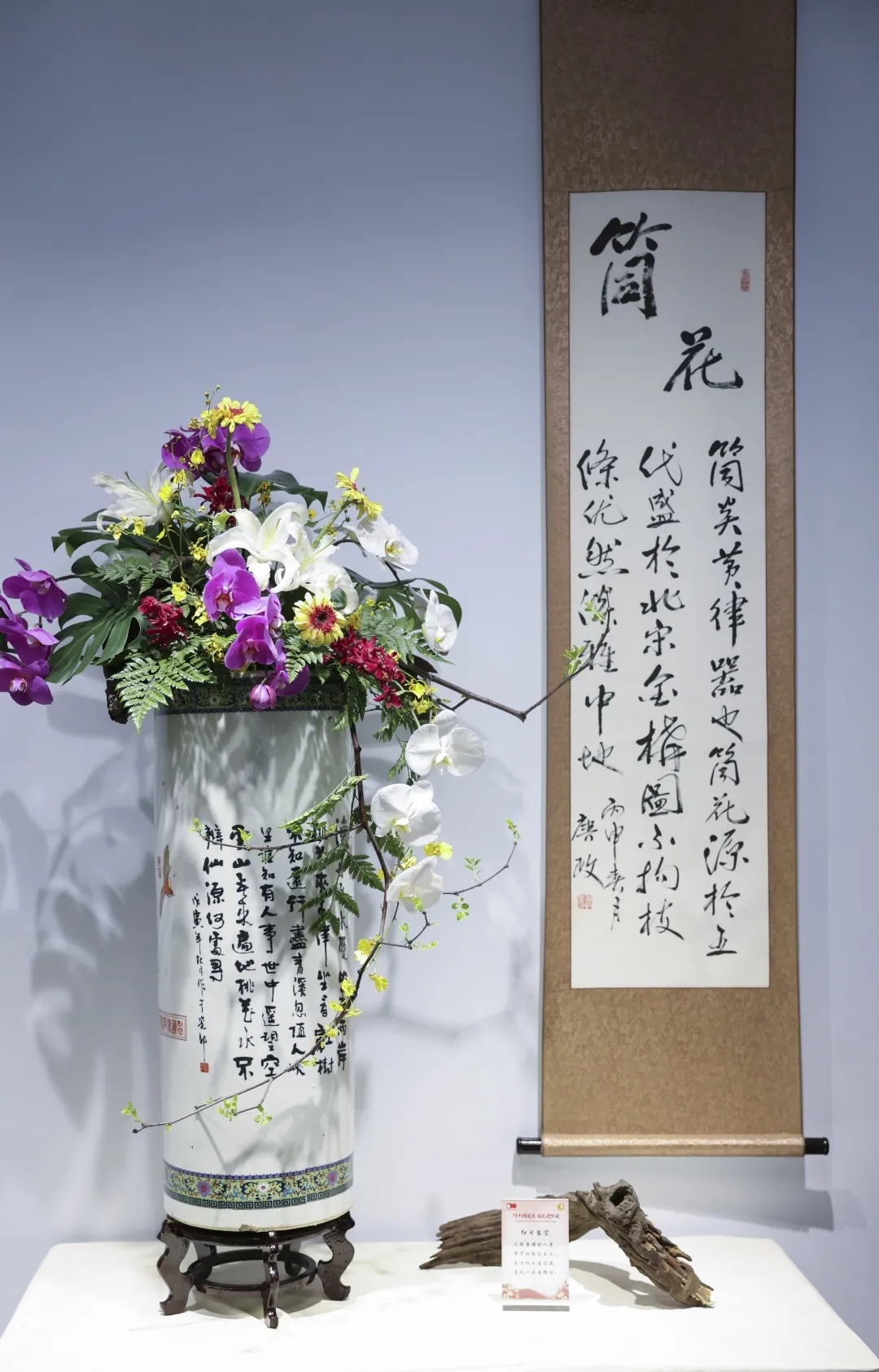 湖南省直工委副主任、机关工会主席、中国插花协会资深讲师邹红梅介绍插花流程