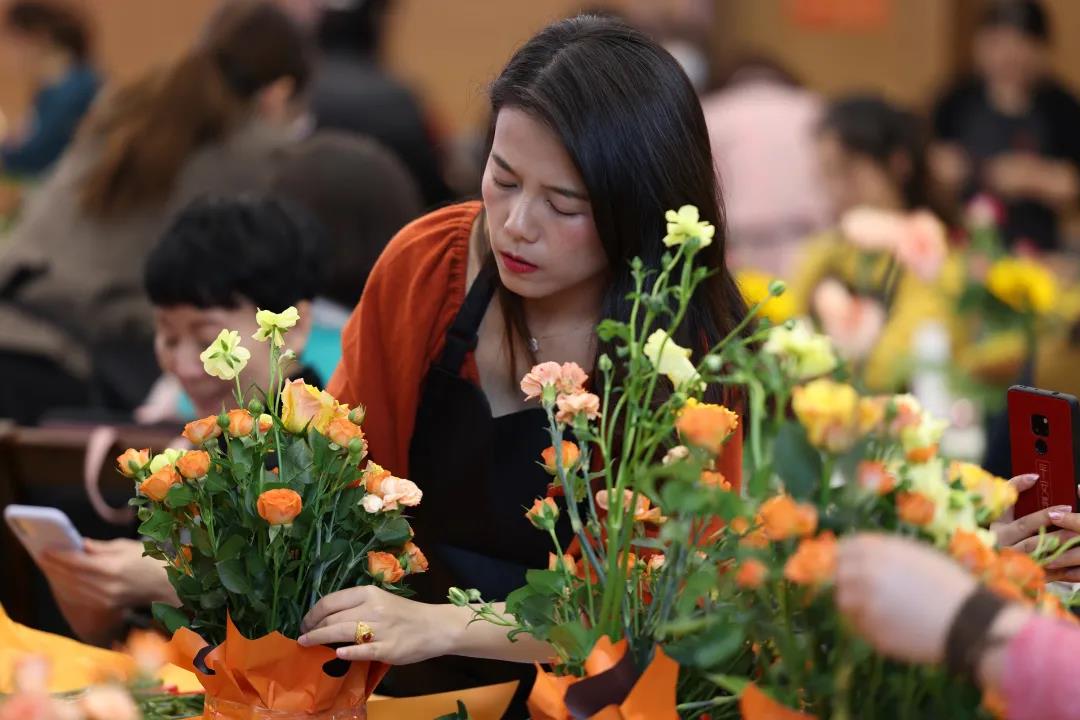 将多彩的鲜花演绎成别具生命力的艺术优品,“娘子军”们此刻将生活中的点滴绽放的淋漓尽致,像花儿般灿烂。