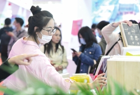 参会者正准备翻阅中南传媒展出的图书。
