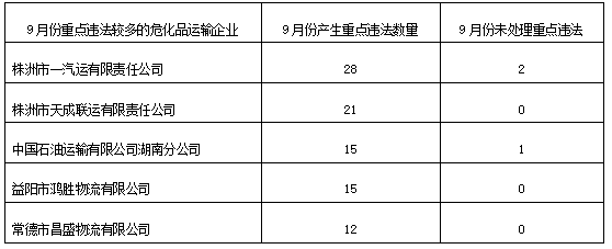 9月份名下危险品运输车辆产生重点违法较多的省内企业: