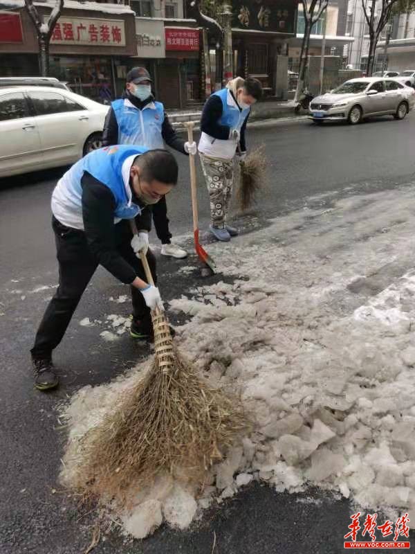 华声在线12月27日讯(记者 邹尚奇)刚刚过去的周末,长沙气温骤降,大雪纷飞。一天下来,积雪覆盖了大街小巷,给市民出行带来困难。12月27日,一大清早,长沙市开福区司法局副局长胡蓉和望麓园司法所干部一行,来到开福区望麓园街道,带领社区工作人员、志愿者及一些正在进行社区矫正的人员,来到街道辖区内学校及湘春路、黄兴北路等主要交通干道,一起铲除清扫道路上的积雪,为学生安全上学、居民安全出行保驾护航。辖区居民、学校学生纷纷竖起了大拇指。