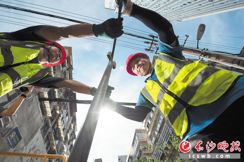 豆大的汗珠顺着段师傅的脸颊流下来,等到更换完毕,段连中身上就像被雨水淋过一样,工作服已完全湿透,找不到一块干的地方。“长沙高温来临,这两天身上的衣服总是湿了又干,干了又湿,就没完全干过。”段连中说,由于高温户外抢修的任务多,每天回来,脱下来的衣服都是湿的。
