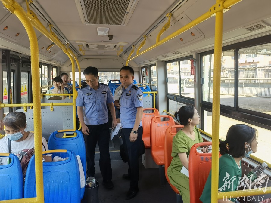 8月22日,益阳市资阳区马良路,工作人员在公交车上巡查。连日来,益阳市资阳区、桃江县、沅江市相继开展交通安全源头隐患检查工作。对检查中发现的问题要求企业尽快落实监管责任,加大对高风险车辆、高风险驾驶人的排查整改力度,定期开展车辆检测和维护,严禁“带病”上路,加强道路安全防线。盛宏媛 谢武 摄影报道