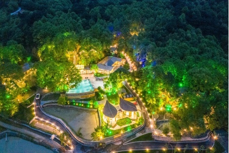 ▲“五号山谷”民宿夜景。望城区委宣传部供图