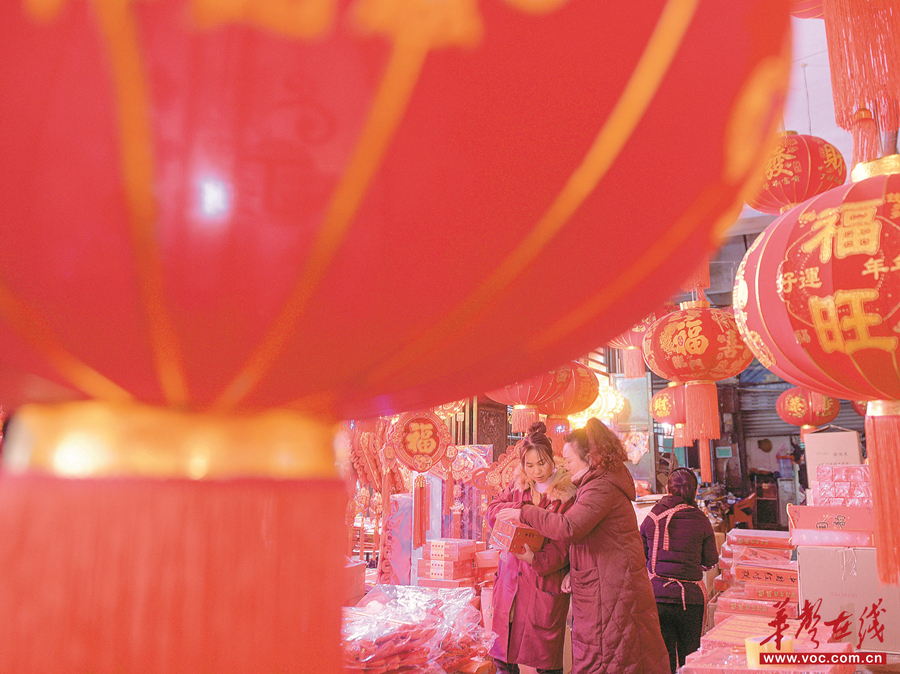 1月24日,市民在道县一家批发市场忙着选购新春饰品,喜迎新春佳节。