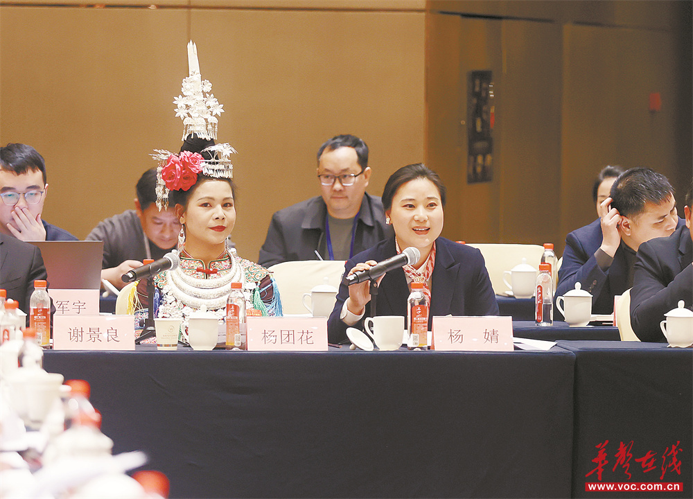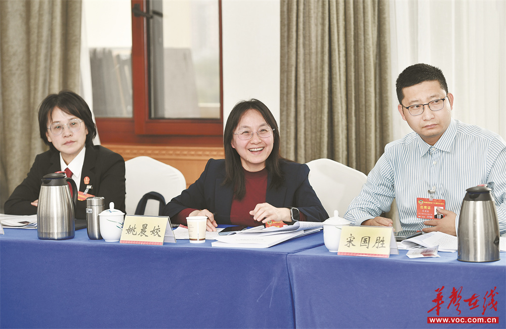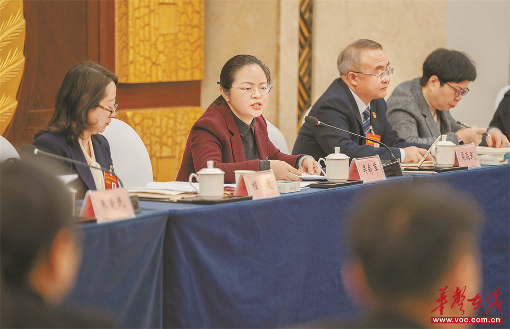 2月3日下午,怀化市代表团杨婧代表围绕优化营商环境、助力湖南商品走向海外市场建言。华声在线全媒体记者 赵持 摄