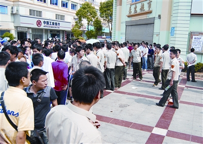 记者看到,围观的市民多是超市服务员、供货商等。僵持的期间,不断有供货商找来朋友,租来小货车,“万一超市大门被砸开,我们好及时救出困在里面的货物。”而超市服务员这时也等在一旁,议论着“要抢些老板的货物来抵自己未付清的工资”。