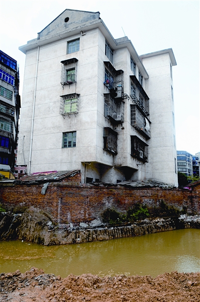 “这个大坑是从6月26日开挖,一直持续到7月17日。每天都在半夜2点到4点动工,‘哐当、哐当’震得人心惊肉跳。”胡跃增妻子说,开发商往大坑灌水5天5夜,现在最深处有六七米,她家房子地基只有1.5米, “现在房子已经出现裂缝,他们就是想用水坑浸垮房子来逼迁。”她显得十分愤怒。
